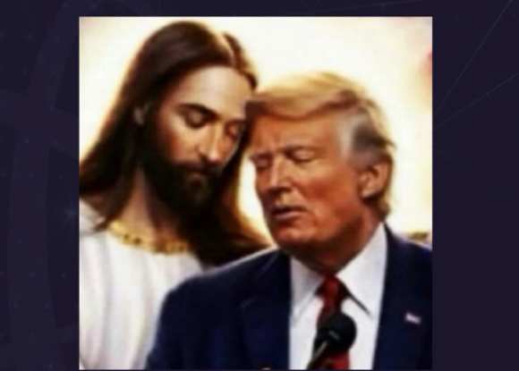 On je na svojoj društvenoj mreži Truth social podelio fotografiju sa Isusom, dok se u pozadini vidi američka zastava u blistavoj svetlosti.